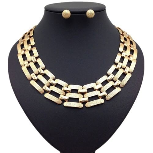 Alloy Grind Arenaceous Design Hollow-out Wholesale Necklace and Ear Studs Jewelry Set- Golden