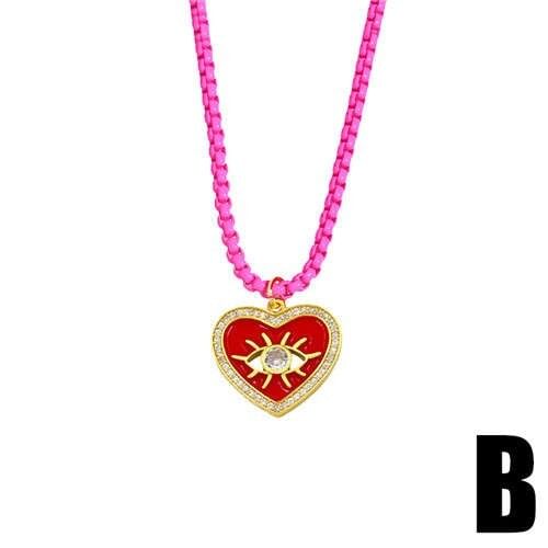 Bohemian Style Heart Shape Enamel Eye Design Wholesale Jewelry Women Copper Necklace – Red